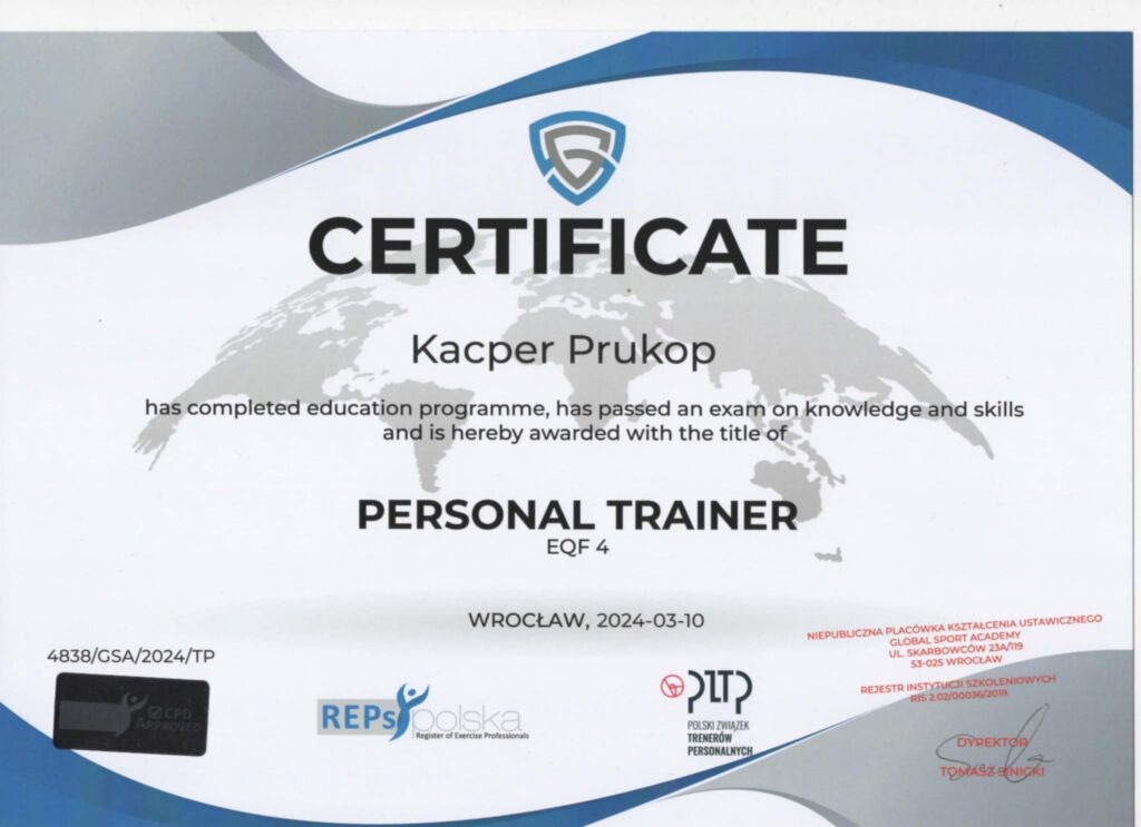 Trening od dziecka jest moją największą pasją. Kocham pomagać ludziom zarówno tym którzy zaczynają swoją przygodę z siłownią, jak również tym zaawansowanym. Dzięki wiedzy, którą posiadam i ciągle zgłębiam jestem w stanie sprostać każdemu wyzwaniu. Chcesz poprawić swoją sylwetkę? Masz słabe wyniki siłowe? A może cierpisz na dolegliwości bólowe? Na każde z tych wyzwań posiadam idealne rozwiązania!